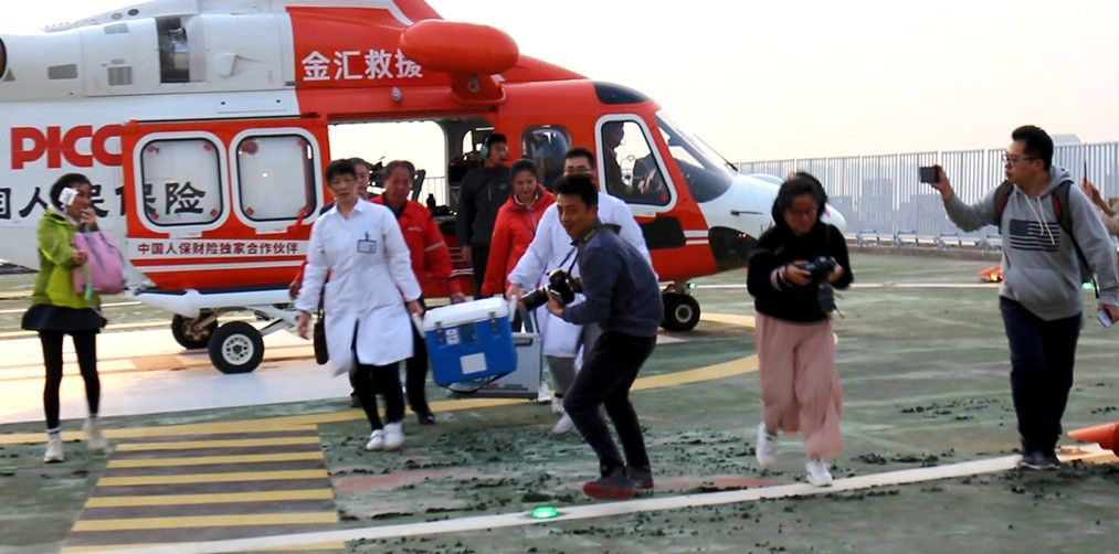 经过50分钟的飞行,上午7点左右直升机降落在目的地直升机停机坪上,医生将捐献器官快速送往手术室内为患者进行器官移植手术。